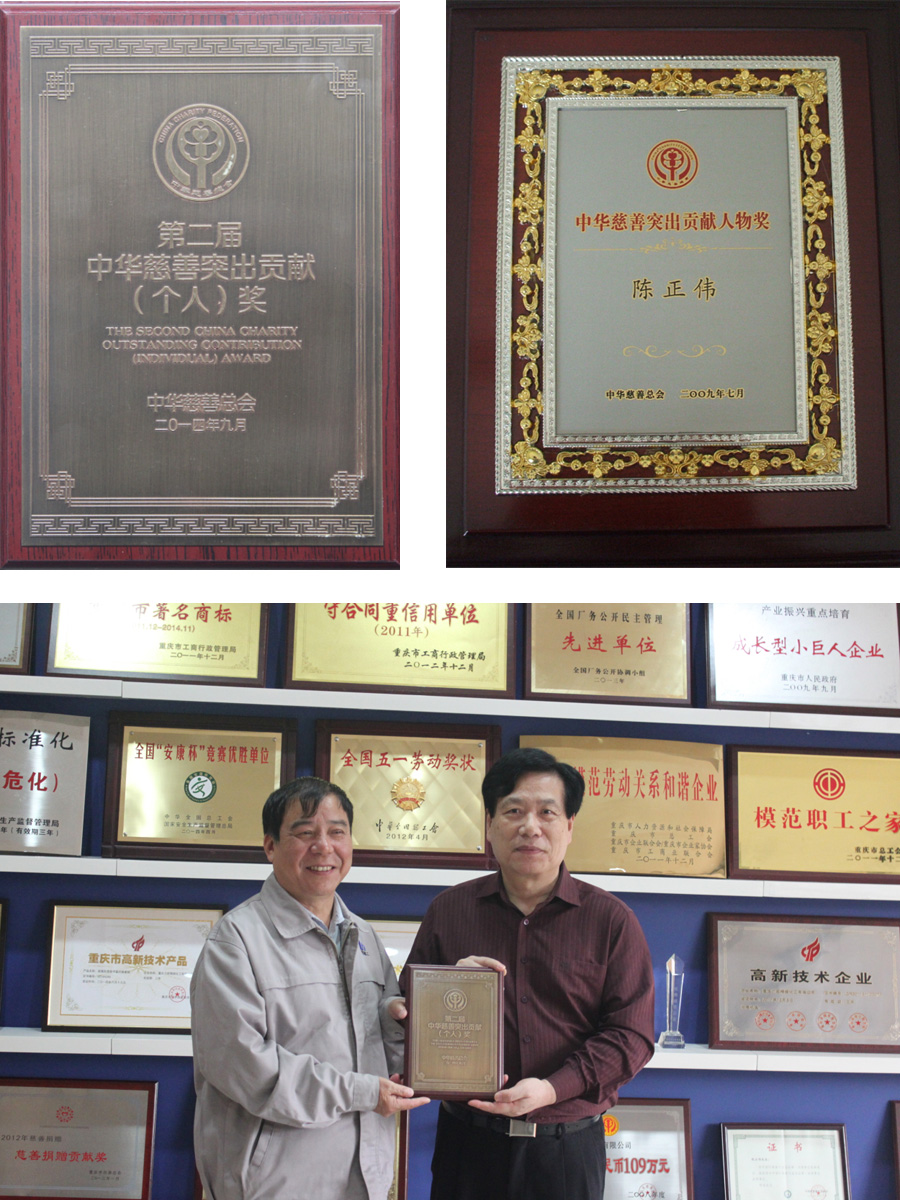 2014年10月23日上午,原民建中央副主席、全國人大常委、重慶市副市長、現(xiàn)重慶市慈善總會會長程貽舉一行親臨重慶力宏精細(xì)化工有限公司為公司總經(jīng)理陳正偉頒發(fā)了,由中華慈善總會頒發(fā)的第二屆“中華慈善突出貢獻(xiàn)獎”,這是總經(jīng)理陳正偉連續(xù)兩屆獲此殊榮。