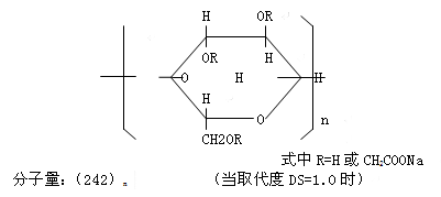 1、 產品概述 產品名稱:羧甲基纖維素鈉(Sodium Carboxymethyl Cellulose),習慣上簡稱為羧甲基纖維素,英文簡寫為CMC。CMC是一種有代表性的纖維素醚,工業上多用其鈉鹽,屬於高分子陰離子型電解質,此外,還有它的銨鹽、鋁鹽等。有時也生產CMC酸。取代度,即對每一個無水葡萄糖單位的置換體的與之反應的羥基的平均數,等于1時,它的分子式為[C6H7O2(OH)2OCH2COONa]n, 結構式一般寫成: